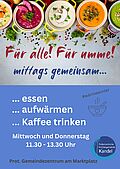 „Mittags gemeinsam“ findet im Großen Saal (OG) des Prot. Gemeindezentrums statt.