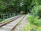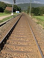 Bei Helmbach ergibt sich die nächste Gelegenheit sich zu verlaufen. Wieder fehlt an einer kritischen Stelle die entscheidende Jakobsmuschel und wir sind schon auf der Straße nach Iggelbach, weil wir keinen anderen Weg erkennen können. Heinz-Dieter ist aber kritisch und nach einem Blick auf die Karte kehren wir wieder um. Heinz-Dieter will mittlerweile keinen Schritt mehr zu viel laufen und hat sein Tempo so weit reduziert, dass ich mühelos folgen kann. Wir können aber keinen Weg erkennen. Auf der Straße wollen wir nicht laufen und so entscheidet Heinz-Dieter dass wir den Schienen der Kuckucksbahn folgen. Schweller um Schweller um Schweller laufen wir auf den Schienen. Ich frage sicherheitshalber ob der Zug tatsächlich nur am Wochenende fährt. Was aber offensichtlich so ist, da kein Zug kommt.