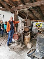 Der Leistenmüller Christoph Blankenburg begrüßte die Gruppe auf dem heutigen landwirtschaftlichen Betrieb. Im Anschluss gab er in einem kurzen lockeren Vortrag einen Abriss über die Geschichte der Leistenmühle allgemein und die Nutzung der Wasserkraft an diesem Standort im Besonderen.