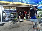 Um 15 Uhr sind wir zurück in Kandel und begeben uns zu Alfred in die trockene Gartenlaube. Der Regen lässt schnell wieder nach und wir genießen nun bis gegen 18 Uhr den ?Theorieteil? unserer Paddeltour. Herrliche Flammkuchen und kühle Getränke versüßen uns den schönen Tag.