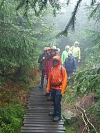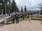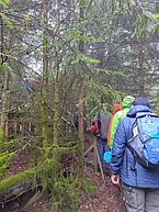 Im Anschluss ging es weiter zum "Lotharpfad". Der Name geht zurück auf den Sturm Lothar der 1999 an dieser Stelle für heftige Verwüstung gesorgt hatte. Man beließ diesen Bereich wie er war, baute Übergänge und Aussichtspunkte, ansonsten konnte sich die Natur entwickeln. Aufgrund des Hochnebels war das Durchstreifen des Lotharpfads für den ein oder anderen eine mystische Angelegenheit.