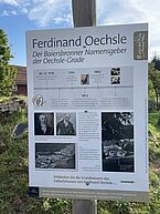 Verwunderung sorgte ein Hinweisschild auf Christian Ferdinand Oechsle. Ja, genau, der Oechsle. Nach der von ihm entwickelten Methode zur Bestimmung des Mostgewichts wird bis heute die Qualität des Traubenmostes in der Einheit Grad Oechsle gemessen.