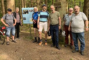 Beim letzten Männertreff stand wieder ein Außentermin auf dem Programm. Es ging mit dem Fahrrad vom Marktplatz zur Leistenmühle. Sieben Männer starteten kurz nach halb sieben Richtung Kandeler Feld. Vorbei am Obsthof Zapf ging es zur Leistenmühle. Dort stieß auch der achte Mann zur Gruppe.