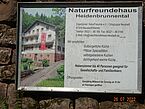 Wir verlassen die bebaute Wohngegend und folgen dem asphaltierten Weg in den Wald. Nach einiger Zeit des Anstiegs erblicken wir ein Gebäude im Wald. Das davor stehende Schild weißt es als Naturfreundehaus Heidenbrunnertal aus. Öffnungstage Mittwoch bis Sonntag. Also heute am Dienstag geschlossen. Aber, - oh Wunder - das Naturfreundehaus Neustadt ist das Naturfreundehaus Heidenbrunnertal und just dieses ist namentlich in unserer Wegbeschreibung erwähnt.