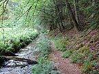 dieser Seite angebracht war. Nach etwa 40 m war auf der anderen Straßenseite eine Treppe (genau wie in der Wegbeschreibung) in das Bachtal hinunter. Ich durchwanderte dieses atemberaubend schöne Tal, auf der gegenüberliegenden Seite dann ansteigend am Tal entlang. Über eine Höhe und wieder hinunter ins nächste Tal, was schreibe ich, die nächste Klamm! Ich war in der Elendsklamm angekommen. Wild romantisch, jedoch auf dem Grund nicht begehbar.