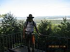 Gestärkt machte ich mich an den Abstieg nach Landstuhl, hier sollte es in nordwestlicher Richtung vorbei am Bismarckturm weiter gehen. Leider auch hier in der Stadt wenig bis gar keine Markierung. Was dazu führte, dass ich mich mal wieder für den falschen, weiteren Weg entschied. Nach einem atemraubenden Anstieg entlang einer US-Militäreinrichtung erreichte ich endlich den Bismarckturm. Hier gönnte ich mir eine kurze Rast mit Verzehr von Teilen meiner mitgeführten Verpflegung. Dabei studierte ich ausführlich meine Wanderkarte. Ich stellte fest, dass wenn ich dem Weg L2 nach links, also nach Westen folge ich wieder auf den Jakobsweg treffen müsste. Die nächsten drei Stunden bis zum Ziel der Fritz-Claus-Hütte zogen sich wie Kaugummi. Inzwischen machte sich die zurückgelegte Stecke in meinem Beinen bemerkbar, die Tagestemperaturen trugen ein Übriges zu meiner körperlichen Verfassung bei.