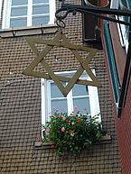 Rechts führt der Weg direkt runter ins Tal. Nach dem Abstieg landen wir erst einmal auf einer größeren Straße mit einigem Autoverkehr, der wir zunächst Richtung Lambrecht folgen. Keine Jakobsmuscheln zu finden. Vermutlich haben wir den richtigen Weg schon verloren. Bloß wo? Da fällt uns auf der anderen Seite der Straße ein Hinweisschild „Naturfreundehaus Neustadt“ ins Auge. Auf Verdacht folgen wir diesem Schild in eine Straße, die uns langsam ansteigend, von dem Autoverkehr wegführt. Spontan klingelt Heinz-Dieter nach einiger Zeit an einem Wohnhaus. Das Haustürschloss wird aufgeschlossen und ein Mann mittleren Alters steht in der Tür und schaut uns etwas überrascht an. Im Hintergrund ist seine Frau zu erkennen. Es erscheint mir als ob sie lächeln würde. Heinz-Dieter fragt: „Geht es hier zum Naturfreundehaus?“. Die Mine des Mannes entspannt sich. „Ja, Ja, - da geht es hoch - immer gerade aus“. Er unterstreicht seine Aussage mit einer Armbewegung. „Danke“ - Die Tür wird geschlossen. Wir gehen weiter.