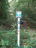 Wir entdeckten dann auf der Rückseite eines Verkehrsschildes wieder die Muschel. In der Annahme dass wir Richtung Johanniskreuz unterwegs seien, schritten wir bergan. Nach einiger Zeit war uns die Strecke doch merkwürdig, es waren keinerlei Wegmarkierungen mehr zu finden. Mein Handy funktionierte wegen Problemen mit dem Provider nicht. Wolfgang hat dann mit komoot den Weg nach Johanniskreuz vorgegeben. Nach einiger Zeit erreichten wir dann wieder markierte Wege, sodass wir ca. 13:00 Johanniskreuz erreichten.
