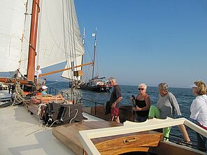 Und wer noch nie auf einem Segelschiff war, hat sicher recht vage Vorstellungen von all dem, was Segeln ausmacht, vom Gemeinschaftssinn (der einfach vorhanden sein muss!), von Wind und Wellen auf hoher See und von der Enge, die auf einem kleineren Boot oder Schiff einfach das Zusammenleben beeinträchtigen können!