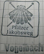 Der Weg führte nun schnell aus dem Ort über eine Wiese wieder in den Wald. Im Wald ein satter Anstieg der mich echt außer Atem gebracht hat. Oben angekommen, am Ortseingang von Lambsborn wieder eine Tafel über den Jakobsweg. Ich rang noch nach Luft als mein Mobiltelefon klingelte. In der Leitung war Roland S., der wieder mit seinem Computer zu kämpfen hatte. Nach wenigen Tipps war auch diese Problem aus der Welt.