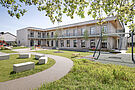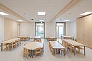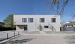 Jeder Gruppenraum hat Zugang ins Freie. Die Gruppen im Erdgeschoss können direkt ins Außengelände, die Gruppen im Obergeschoss kommen auf den Laubengang und kommen über eine Treppe ins Außengelände.