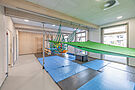 Unser Bienennest ist jetzt 2 stöckig. Im Erdgeschoss befinden sich 2 Gruppen, die Bären und die Hasen, unser Turnraum, unsere Küche und unser Speiseraum.